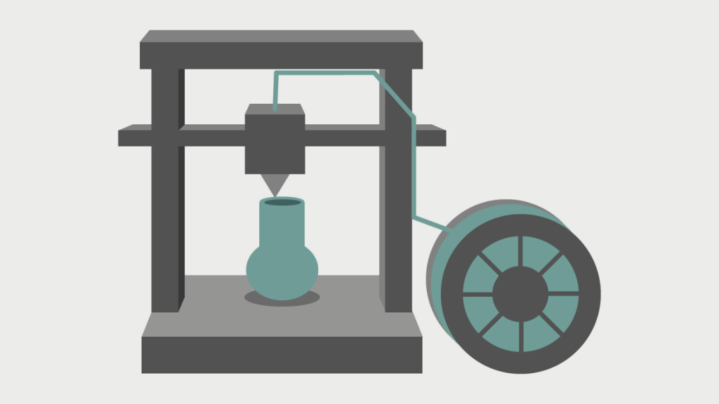 高熱でフィラメントと呼ばれる樹脂材を溶かし、少しずつ積み重ねていくことで立体物をプリントします。